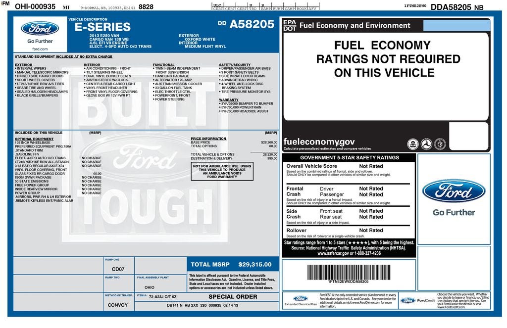 - Vehicle Name: Ford Econoline Cargo Van