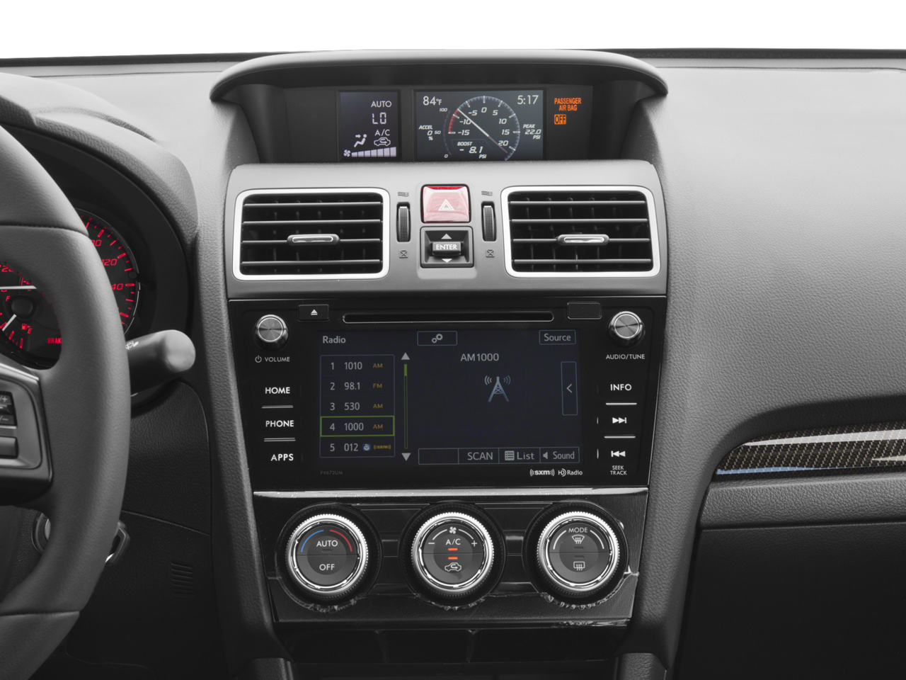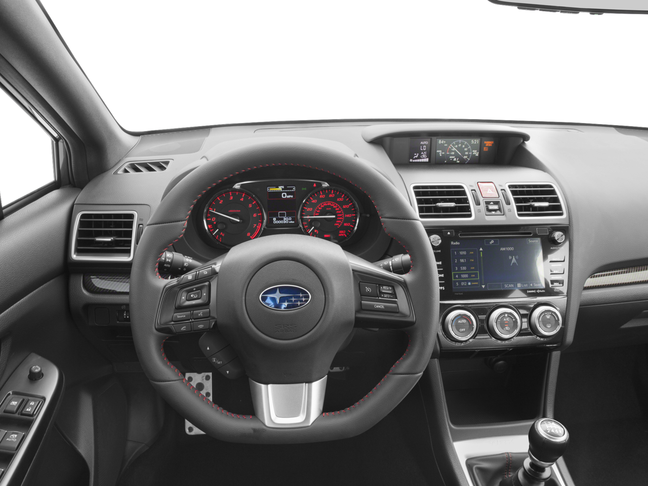 The interior of the 2017 Subaru WRX Limited is designed with the driver in mind. Luxurious Perforated Leather-Trimmed Upholstery, a Sport steering wheel, and Performance Design Heated Front Bucket Seats create an inviting and supportive environment. Dual-Zone Automatic Climate Control, a Tilt and Telescopic Steering Wheel, and a Rearview Camera ensure your comfort and convenience.