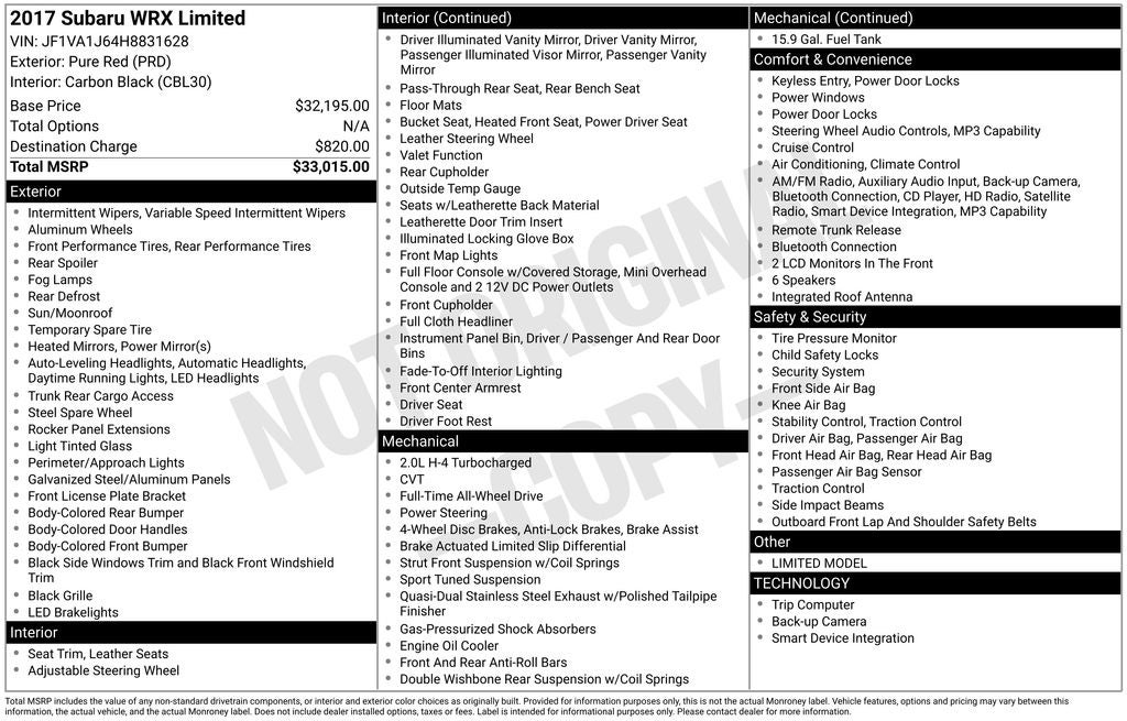 - Vehicle Name: Subaru WRX