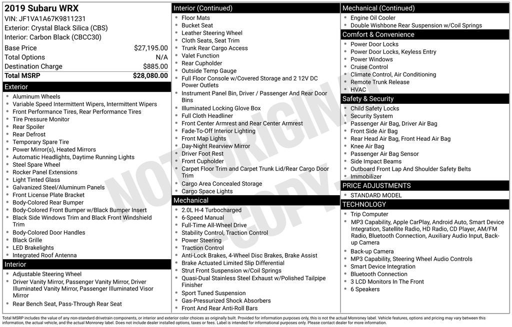 2019 Subaru WRX