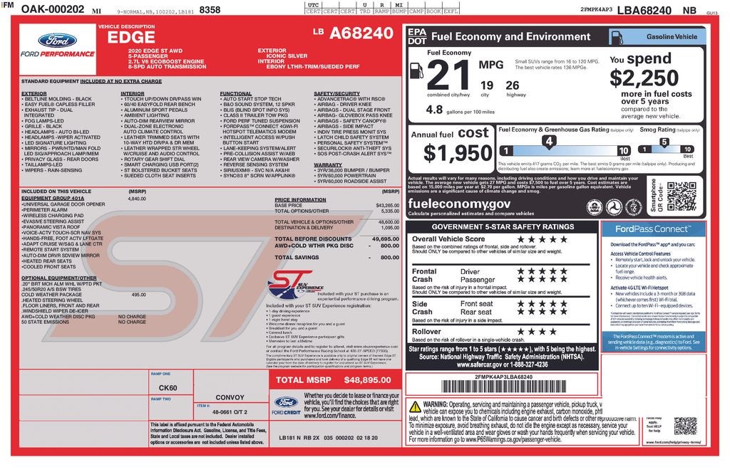 This 2020 Ford Edge ST is the perfect blend of performance, technology, and luxury, elevating your driving experience to new heights. Discover the thrill of ownership and schedule a test drive today.