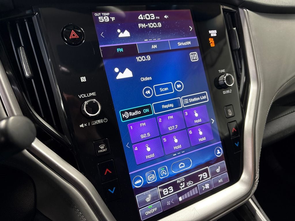 - Radio: Subaru STARLINK 11.6" Multimedia Plus Sys -inc: AM/FM stereo, HD Radio, voice activated controls, Bluetooth® audio streaming and hands-free phone connectivity w/SMS text messaging (applicable w/compatible cellphone), Near Field Communication (NFC), iPod control capability, SiriusXM All Access radio (subscription required), SiriusXM Travel Link (subscription required), smartphone integration: Android Auto, CarPlay and STARLINK cloud applications, 6 speakers, 3.5mm auxiliary input jack and dual USB input ports