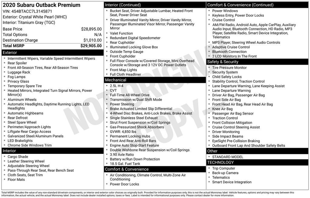 - Vehicle Name: Subaru Outback