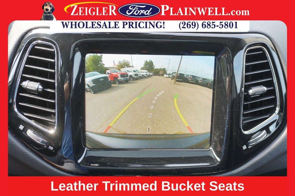 Safety is also a top priority, with features like Brake Assist, Electronic Stability Control, and the ParkView Rear Back-Up Camera providing peace of mind on the road. The Fully Automatic Headlights and Heated Door Mirrors add convenience and visibility, while the Leather Trimmed Bucket Seats and 18 Polished/Gray Pockets Aluminum Wheels give the Compass a premium, refined look.