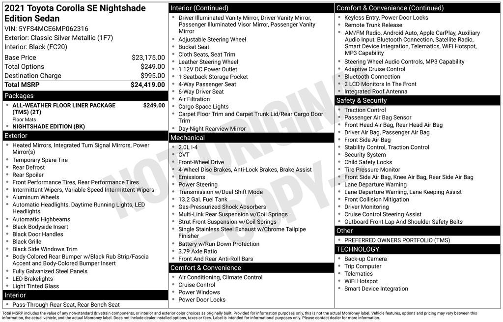Slip behind the wheel of this captivating Corolla and discover the perfect blend of style, technology, and efficiency. With its sleek exterior, well-appointed interior, and impressive fuel economy, the 2021 Toyota Corolla SE Nightshade is the ultimate compact car for the discerning driver. Experience the difference for yourself and schedule a test drive today.