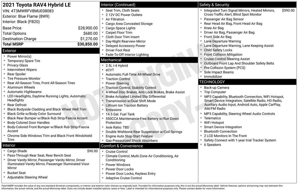 Don't miss your opportunity to make this exceptional 2021 Toyota RAV4 Hybrid LE your own. Schedule a test drive today and discover the perfect balance of efficiency, capability, and style that this remarkable SUV has to offer.