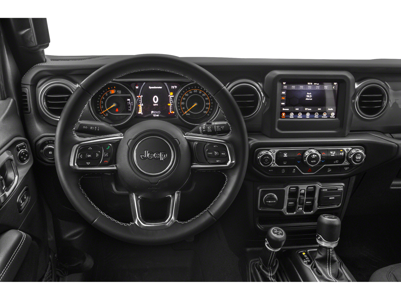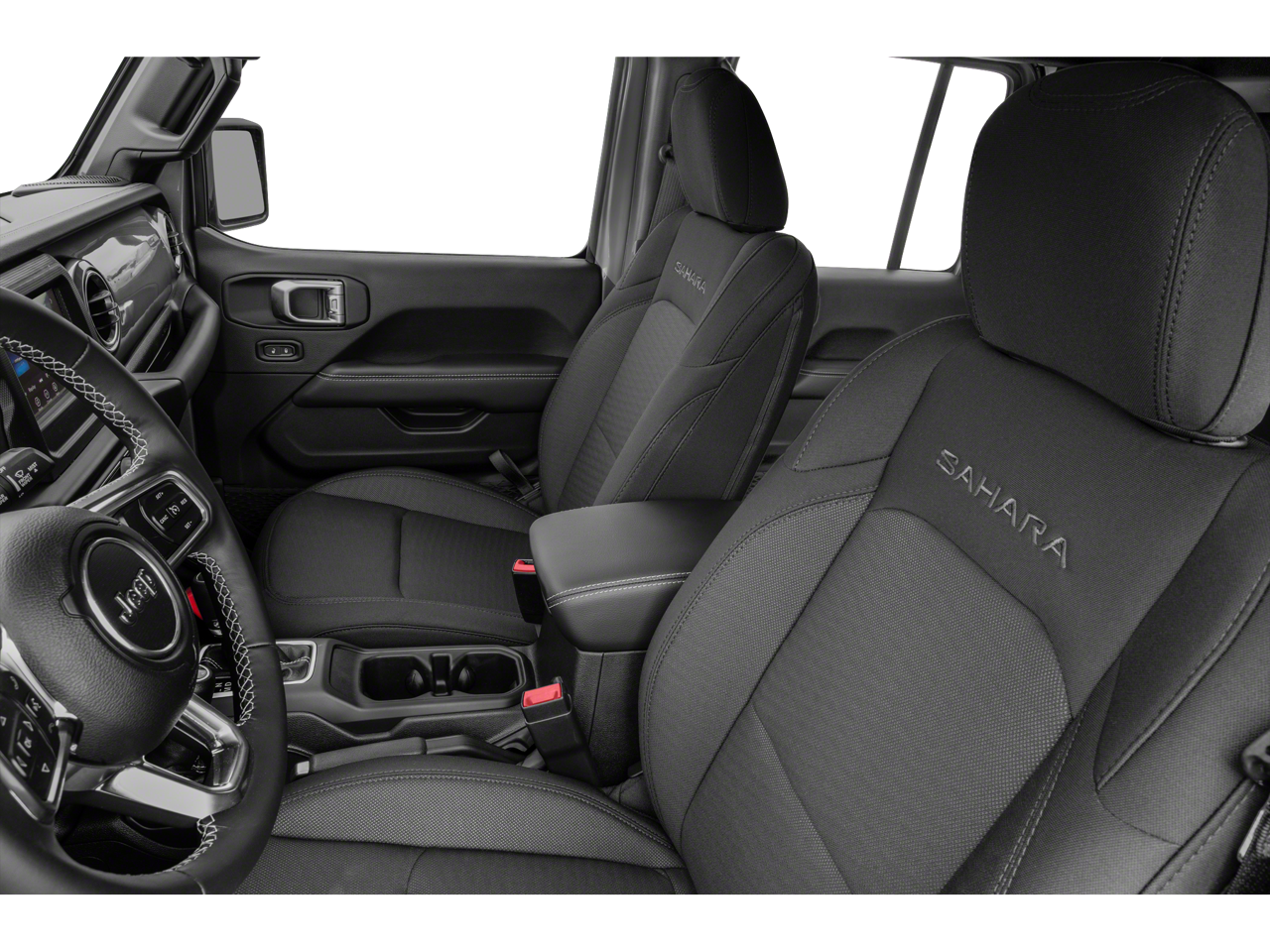 Crafted with premium materials and attention to detail, the Wrangler Unlimited Sahara's interior exudes sophistication and style. The leather-wrapped steering wheel, shift knob, and park brake handle add a touch of refinement, while the dual-zone automatic climate control ensures everyone rides in comfort.