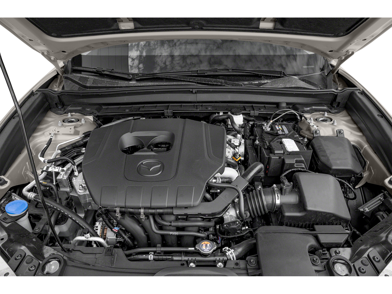 Stepping inside, you'll be greeted by a wealth of premium features that elevate your driving experience. The MAZDA CONNECT™ Infotainment System with Apple CarPlay® and Android Auto™ integration keeps you connected and entertained, while the dual-zone automatic climate control ensures your comfort. The leather-wrapped steering wheel and shift knob add a touch of elegance, and the split-folding rear seats provide the versatility to accommodate your ever-changing needs.