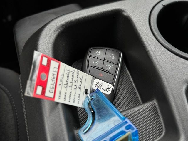 The sleek black exterior and 20-inch painted aluminum wheels give this Silverado a bold, modern look that's sure to turn heads. Inside, the spacious cabin offers ample room for passengers and cargo, with a 60/40 split-folding rear bench seat and a host of connectivity and convenience features.