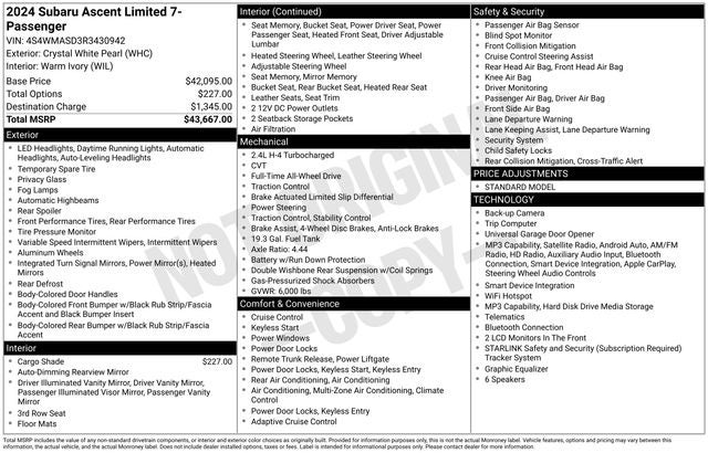 - Vehicle Name: Subaru Ascent