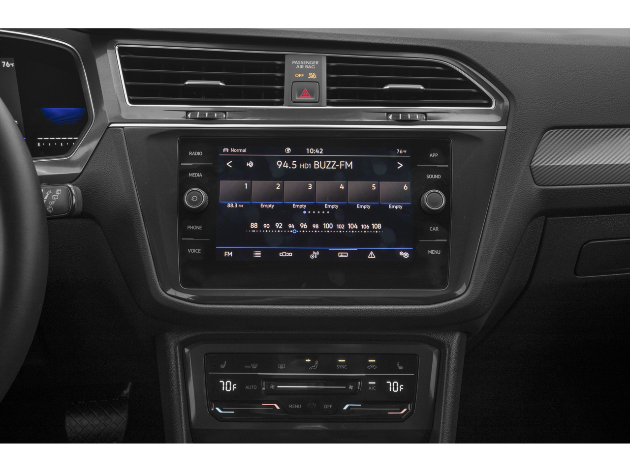 The interior of this Tiguan is designed with your comfort and convenience in mind. Featuring perforated V-Tex Leatherette Seating Surfaces, heated front seats, and a power driver's seat, you'll enjoy a luxurious and relaxing ride. The MIB3 Composition Media AM/FM/HD radio with SiriusXM and 360L keeps you entertained, while the 6 speakers provide exceptional sound quality.